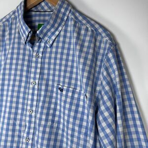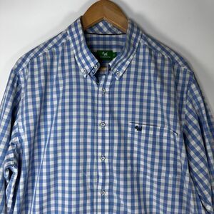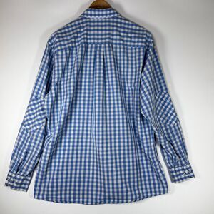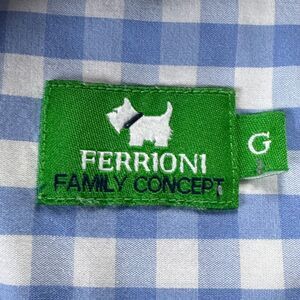 Ferrioni Shirt Men G Large Blue Gingham Check Cotton Made in Mexico Dog Logo