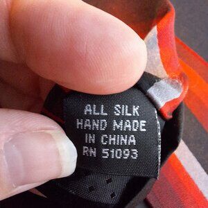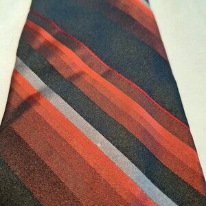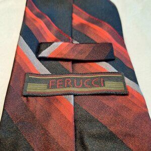 Ferucci Mens Neck Tie Red Burgundy Black White Striped 100% Silk Hand Made