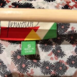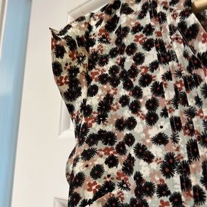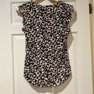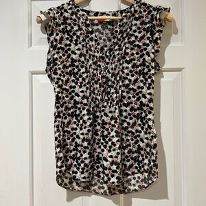 Feevour. Size Small. Pleating on chest. 1/2 button down. Flutter cap sleeves.