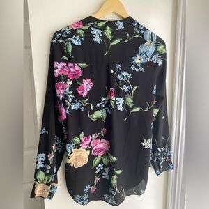 Fervour ModCloth Chiffon Floral Black Blouse Long Sleeve Button Down Top Small