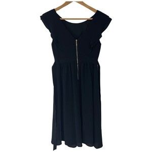 Fervour Womens Fit & Flare Dress Black Scoop Neck Cap Sleeve Flutter XS