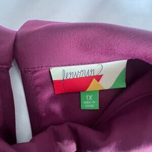 Fervour Women’s Sleeveless Blouse 1X Magenta Satin High Neck Pleated Top