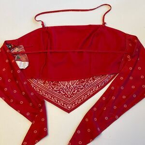 Red bandana festival halter camisole top. XS. Lined. Detatchable straps. Tie at back. Silky flowy texture. Picture with boots and a maxi denim skirt!!!Poly/spandex blend. NWT #biker #festival #coastalcountry