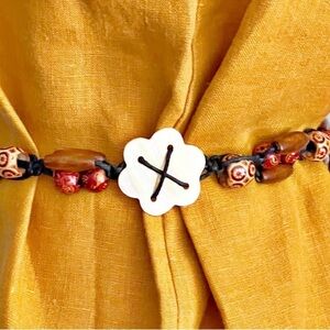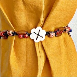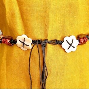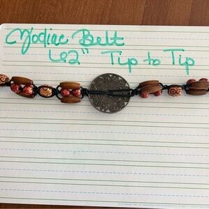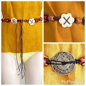 Festival Boho Artsy Painted Bead + Shell Metal Zodiac Medallion String Belt SZ L