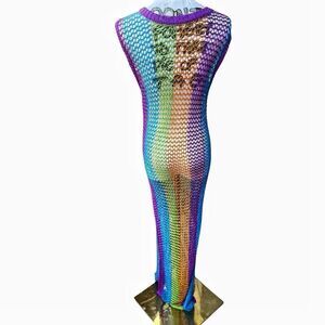 Super Cute Rainbow Mesh Metallic Coverup Festival Dress. Size S/M (No size tag) Measurements are 17” P2P and is 55” long from shoulder to hem.Has lots of stretch and is super glittery & sparkly! Great For Festival Wear or outdoor concert! Fun glitzy piece!