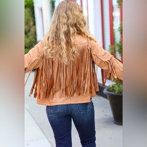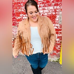 Festival Ready Camel Vegan Suede Fringe Jacket