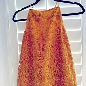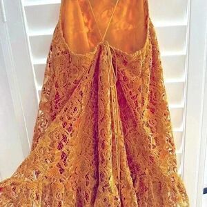 Free People velvet & lace dress with spaghetti straps and cute detailing in back. This is a mini and super flirty. Ties have a bead at the end that hangs down on back.