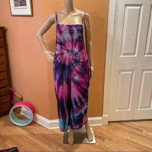 Festival tie dye jumpsuit romper ankle length bibs overalls purple spiral L