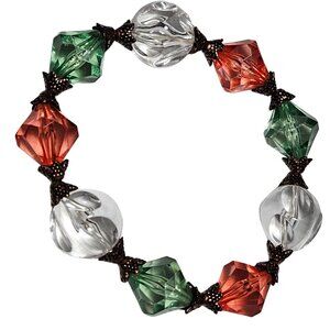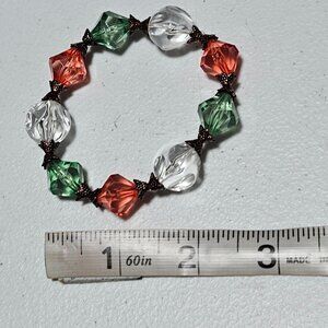 Festive Beaded Stretch Bracelet With Green Red Clear Acrylic Beads Christmas