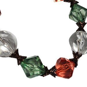 This elegant beaded stretch bracelet showcases a harmonious blend of green, red, and clear acrylic beads. Designed for style and comfort, its lightweight and flexible construction makes it suitable for both everyday wear and special occasions. Enhance any outfit with this vibrant accessory, adding a touch of color and sophistication.