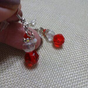 Festive CRYSTAL SANTA Handmade Silver Dangle Earrings (1" Drop) #268C