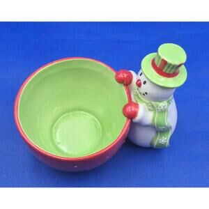 Festive Ceramic Snowman Dip Bowl with Serving Knife Red Green White 8x5x6"