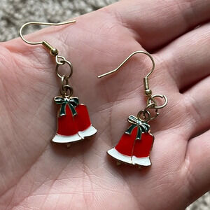 Festive Christmas Bells Dangle Earrings | silver tone