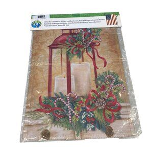 Festive Christmas Garden Flag Holiday Party Banner Candle Lantern Winter Decor