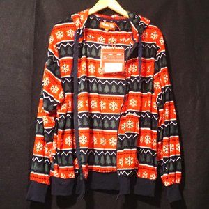 Festive Fun Fleece Winter Holiday Pattern Jacket with Hood Men’s Size M/L