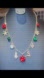 Celebrate the season with this charming gold necklace featuring festive red and green accents. Perfect for adding a touch of holiday spirit to any outfit.