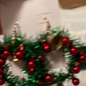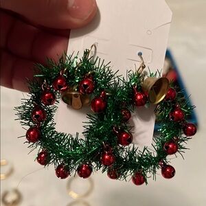 Add a touch of holiday cheer with these festive green and red wreath earrings. Perfect for any celebration.