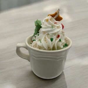 Festive Holiday Candle Mug with Colorful Decorations