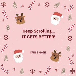 Cute holiday-themed graphic. Features reindeer and Santa faces. Perfect for festive decor. Says Keep scrolling… it gets better! And, it does!