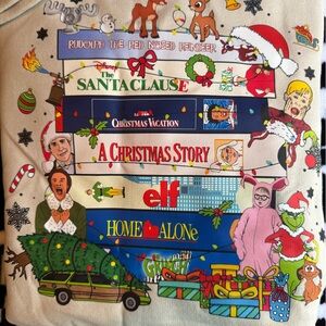 Cozy sweatshirt with colorful holiday-themed graphics. Perfect for the festive season.