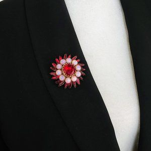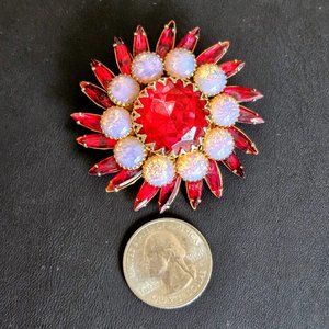 Festive Judy Lee Ruby Red Rhinestone and Faux Opal Brooch Pin