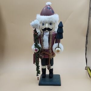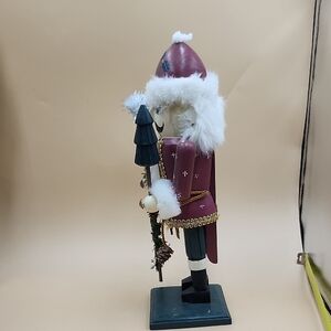 Festive Nutcracker with Burgundy and White Accents Father Christmas 13.5 tall