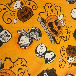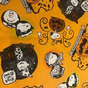 Fabric has CHARLIE BROWN, LUCY, LINUS, SNOOPY & WOODSTOCK on a BRIGHT ORANGE background