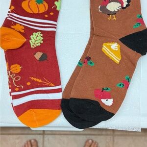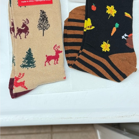 Enjoy comfort and style with this set of festive patterned socks. Featuring playful designs in tan and black, these socks are perfect for adding a touch of fun to your wardrobe. Selling all 4 for $10 never worn