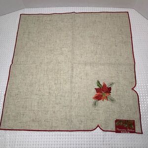 Festive Poinsettia Ribbon Linen Blend Napkins Set of 5 NWT