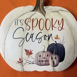Enhance your Halloween decor with this festive pumpkin wall art. Featuring a charming design with cream, black, and brown colors, it's perfect for adding a spooky touch to your home.