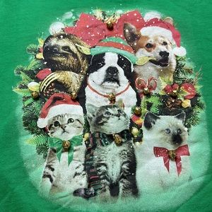 Festive Puppy Dog Cat Kitty Sloth Holiday Sweatshirt with attached bells