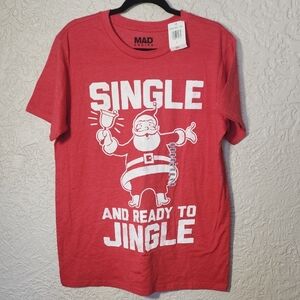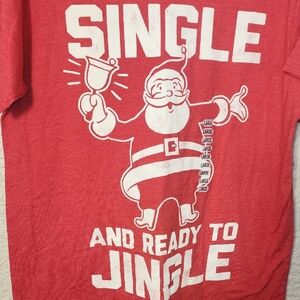 Cheerful red tee with a Santa graphic and playful text. Ideal for holiday fun.
