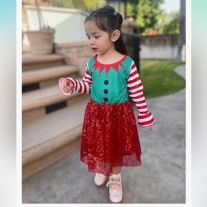 Get your child ready for holiday fun with this festive red and green elf costume. Perfect for parties and playtime.