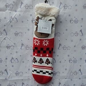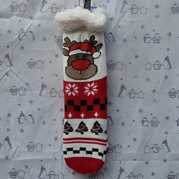 Celebrate the season with these festive reindeer socks in vibrant red and white. Perfect for adding a touch of holiday cheer to your outfit.