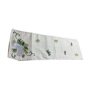 Festive Ridgefield Home Embroidered Table Runner Floral Pine Cone White Green