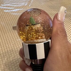 Snow globe wine stopper with black and white stripes. Perfect for the upcoming holiday! NEW WITHOUT TAG/Box
