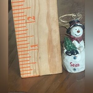 Add a touch of holiday cheer with this charming snowman ornament. Featuring a classic white snowman holding a green tree, it's perfect for your festive decor.