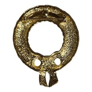 Festive Wreath Bow Brooch Christmas Jewelry Accessory Goldtone Red Green