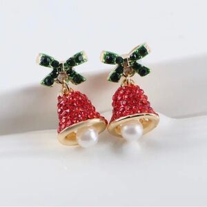 🔔 Fun & festive Christmas jingle bell earrings. These are stunning, just the right size. Embellished with sparkling colored crystals & pearls, perfect for the holiday Christmas party 🔔