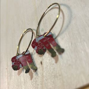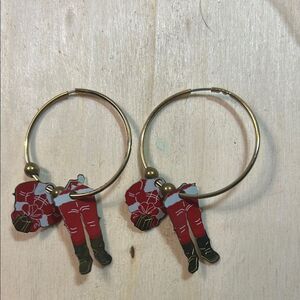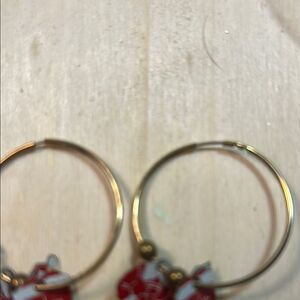 Charming hoop earrings featuring Santa Claus in red. Perfect for holiday celebrations. 441 Well loved