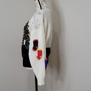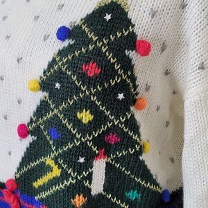 a Christmas sweater that is pretty to wear to any party with a lot if details for that perfect gift or ugly(pretty) Christmas sweater party