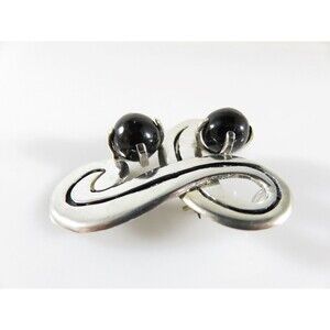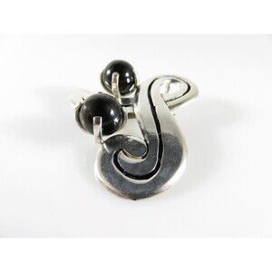 Vintage Circa 1950 Taxco Mexico Sterling Silver Modernist Swirling Brooch Pendant with Onyx Beads Artist Signed TC Conjoined