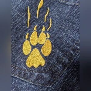 Fetish Women's Y2K Vintage Dark Blue Jeans Size 18 Gold Paw Prints On Pockets