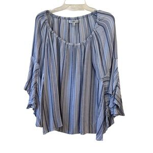 Fever 1X Billowy Blue and White Striped Women's Blouse