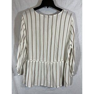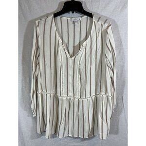 Fever 2X Long Sleeved White Striped Tunic Blouse