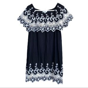 Fever Black Embroidered Ruffle off the Shoulder Dress Size Small Boho