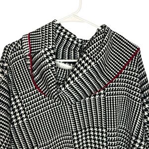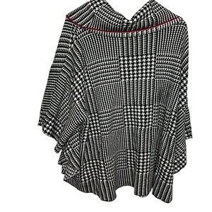Fever Stylish black and white houndstooth poncho. Perfect for adding a classic touch to any outfit. Cowl neck trimmed in red. Sides are gathered for the arms. Excellent preowned condition. Classic and perfect for a variety of occasions. Size L/XL