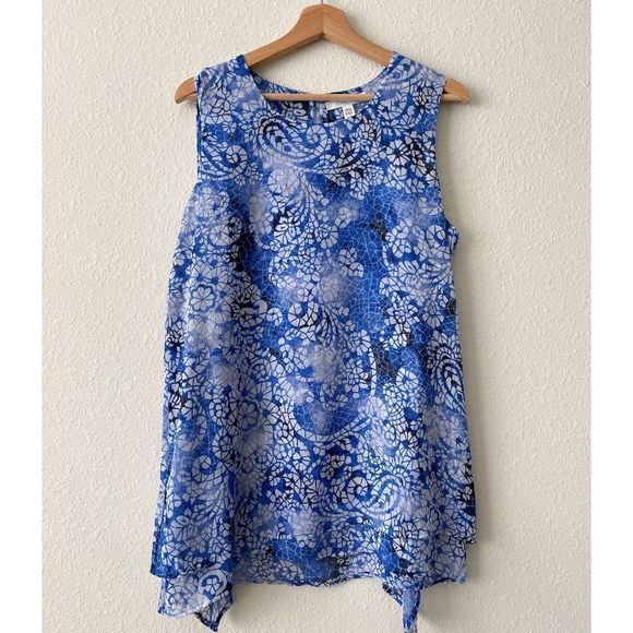 Fever Blue/White Double Layered Sleeveless Blouse Size Large