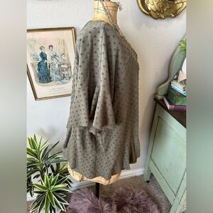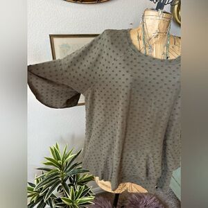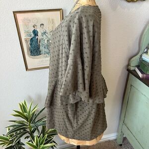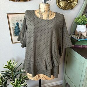 Fever Boutique Army Green Raised Polka Dot Ruffle Crew Neck Blouse Plus Sz 3X