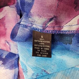 Fever Button Front Sleeveless Pleated Blouse Watercolor Floral Women's Small
